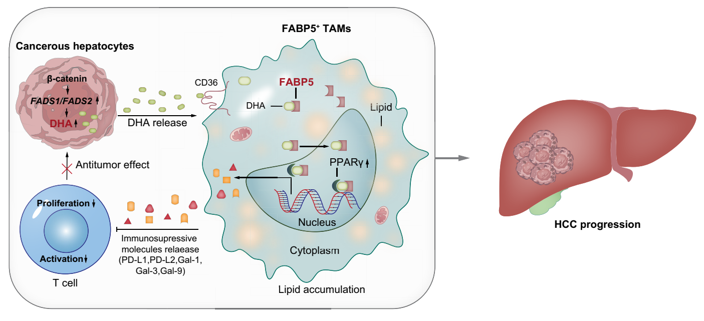 2024年9月29日,上海复旦大学林玉丽教授团队在《Journal of Hepatology》发表'FABP5+ lipid-loaded macrophages process tumour-derived unsaturated fatty acid signal to suppress T-cell antitumour immunity'研究论文,研究聚焦肝细胞癌(HCC)中肿瘤相关巨噬细胞(TAMs)的代谢重编程与免疫抑制机制,揭示了脂肪酸结合蛋白 5(FABP5)作为治疗靶点的潜力。